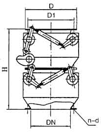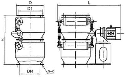 | DN | D1 | D | H | H1 | L | n-d | 卸灰能力m3/h | 傳動裝置型號 | 開閉頻率次/min | 功率kw |